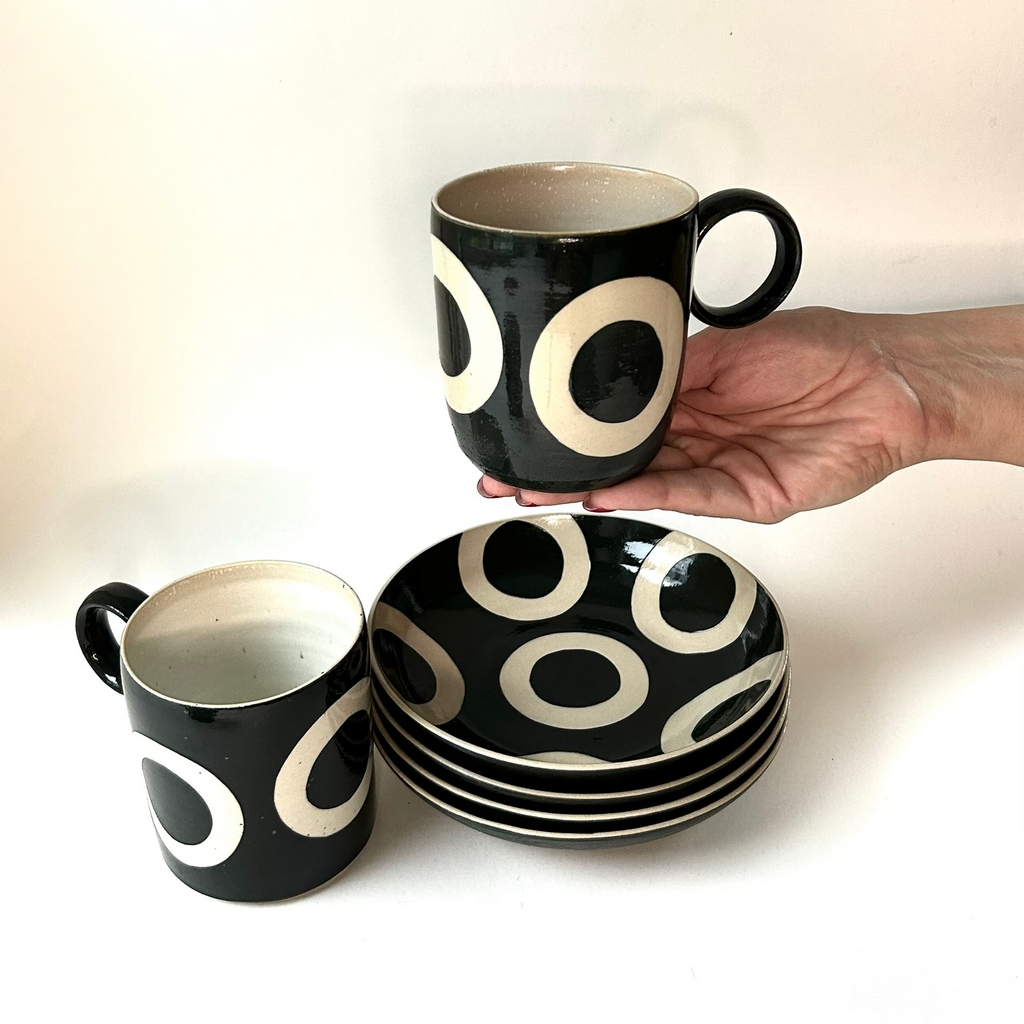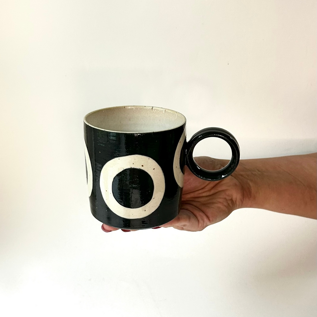 Mängulise sõõrikumotiiviga kõrgkuumussavist mahukas tass. Sobitub ideaalselt sama sarja kausiga. See kooslus loob rõõmu igasse sinu päeva!