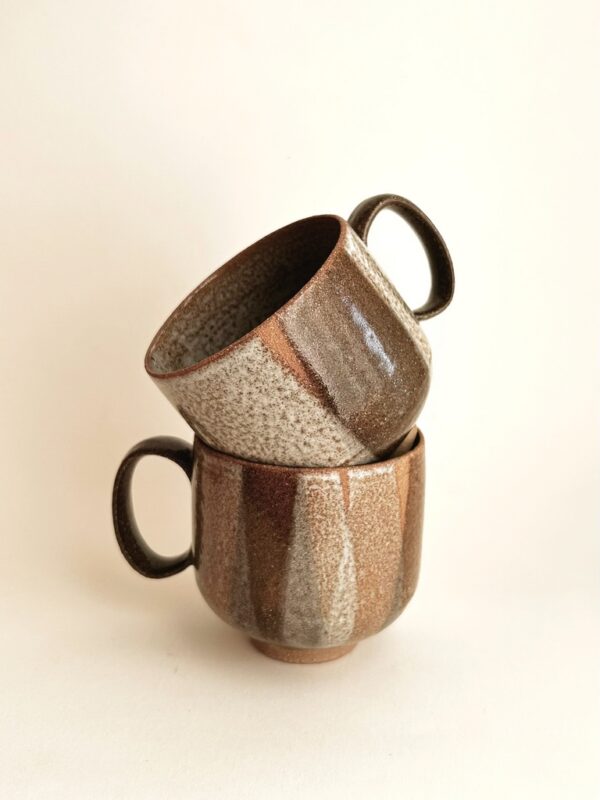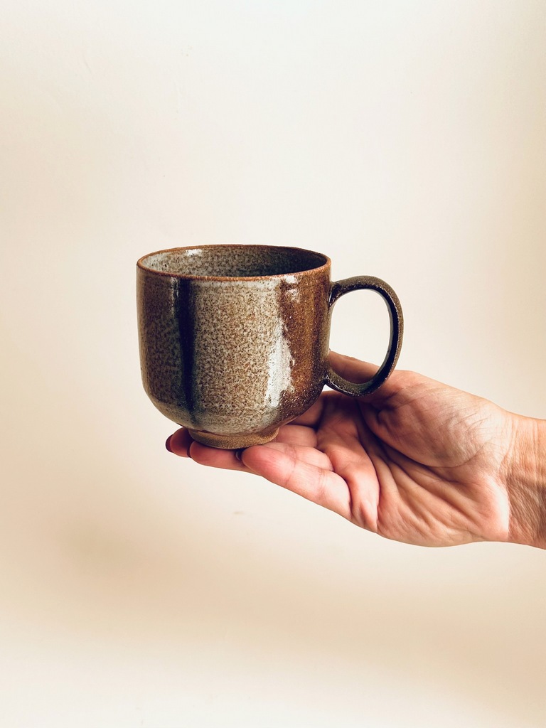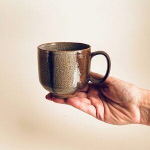 Terrakota tooni kõrgkuumussavist soojades maalähedastes toonides mugava sangaga tass. Võib pesta nõudepesumasinas.